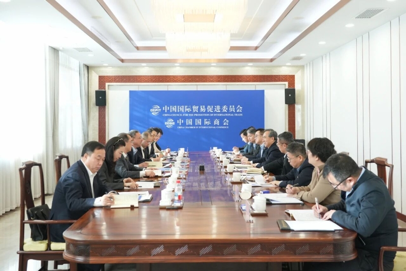 倪真與中國(guó)貿(mào)促會(huì)黨組書(shū)記、會(huì)長(zhǎng)任鴻斌會(huì)談